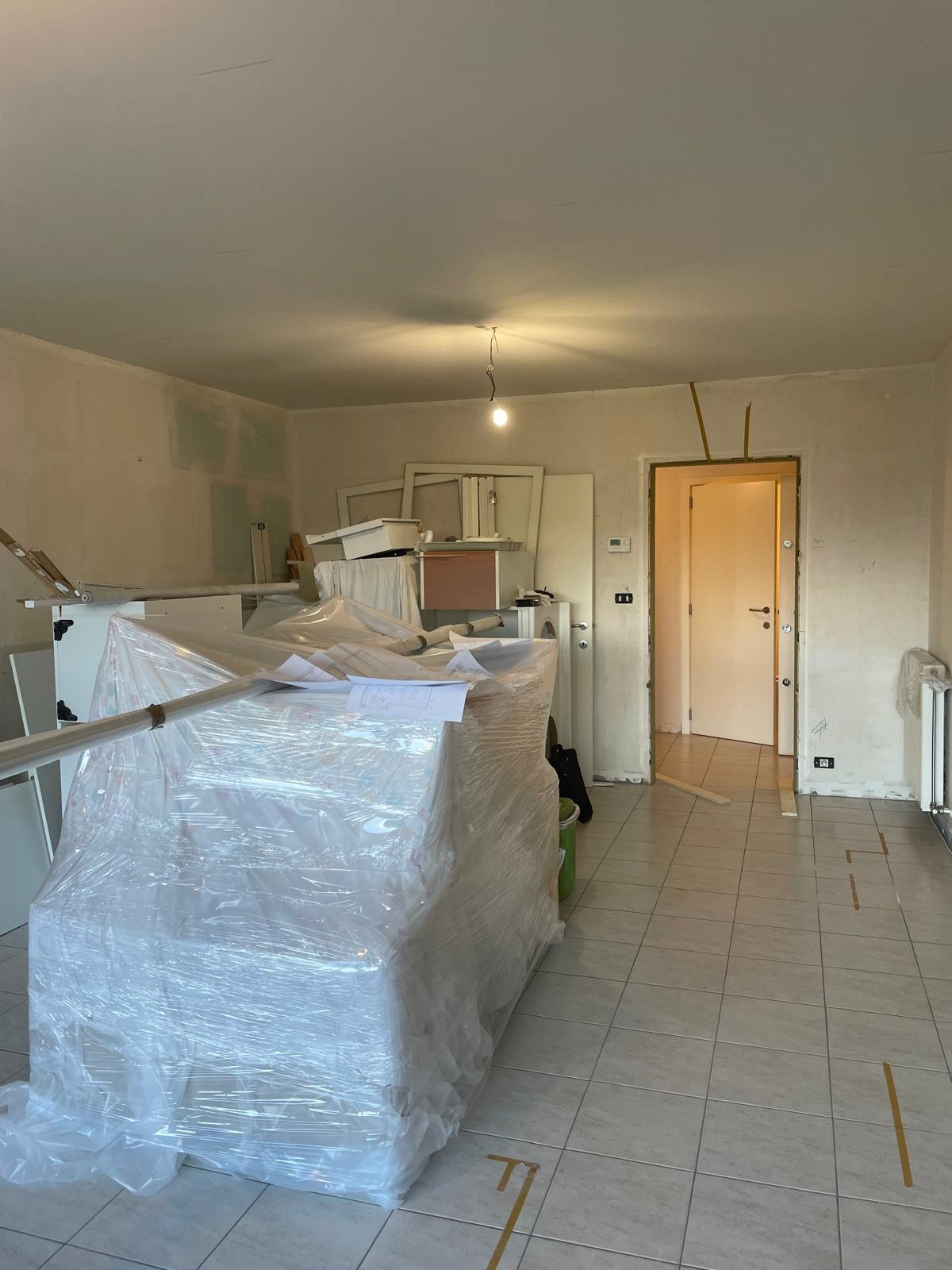 December '25 - Nadat alles werd afgebroken, kan het opbouwen al terug beginnen. Het volledige appartement zal een nieuwe look krijgen met het nieuwe maatwerk. Hierdoor zal de volledige woning een mooi geheel vormen