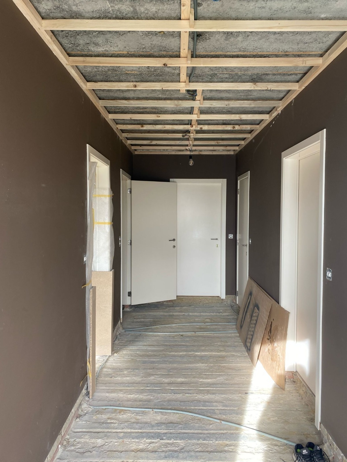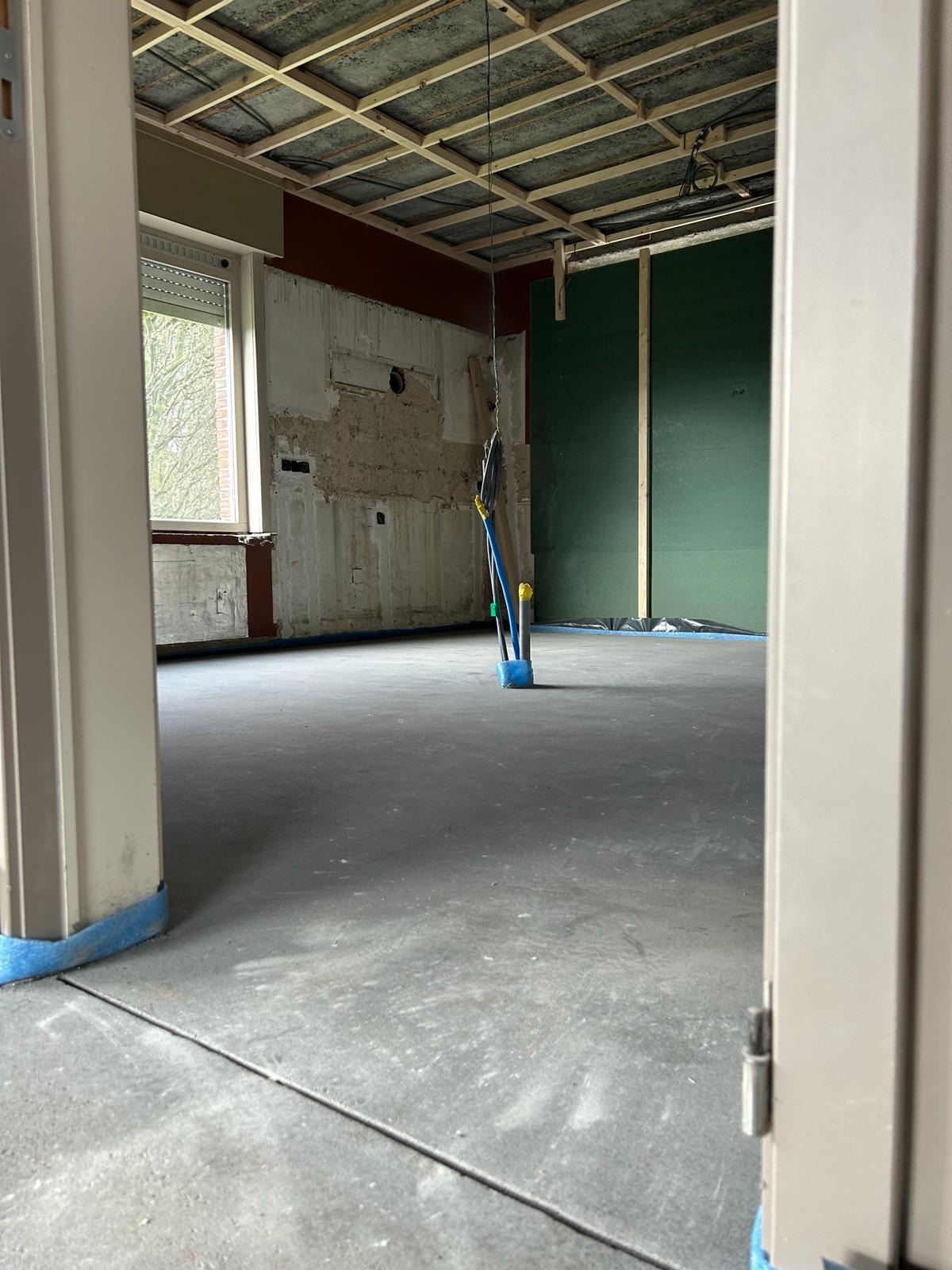 Maart 24' - Vooraleer er een nieuwe vloer kan gelegd worden hebben we eerst een laagje chape nodig! We zorgen er steeds voor dat de werken ook een positieve invloed hebben op het energetische aspect van de woning, daarvoor hebben we ook vloerisolatie voorzien (in de chape + in de kruipkelder).