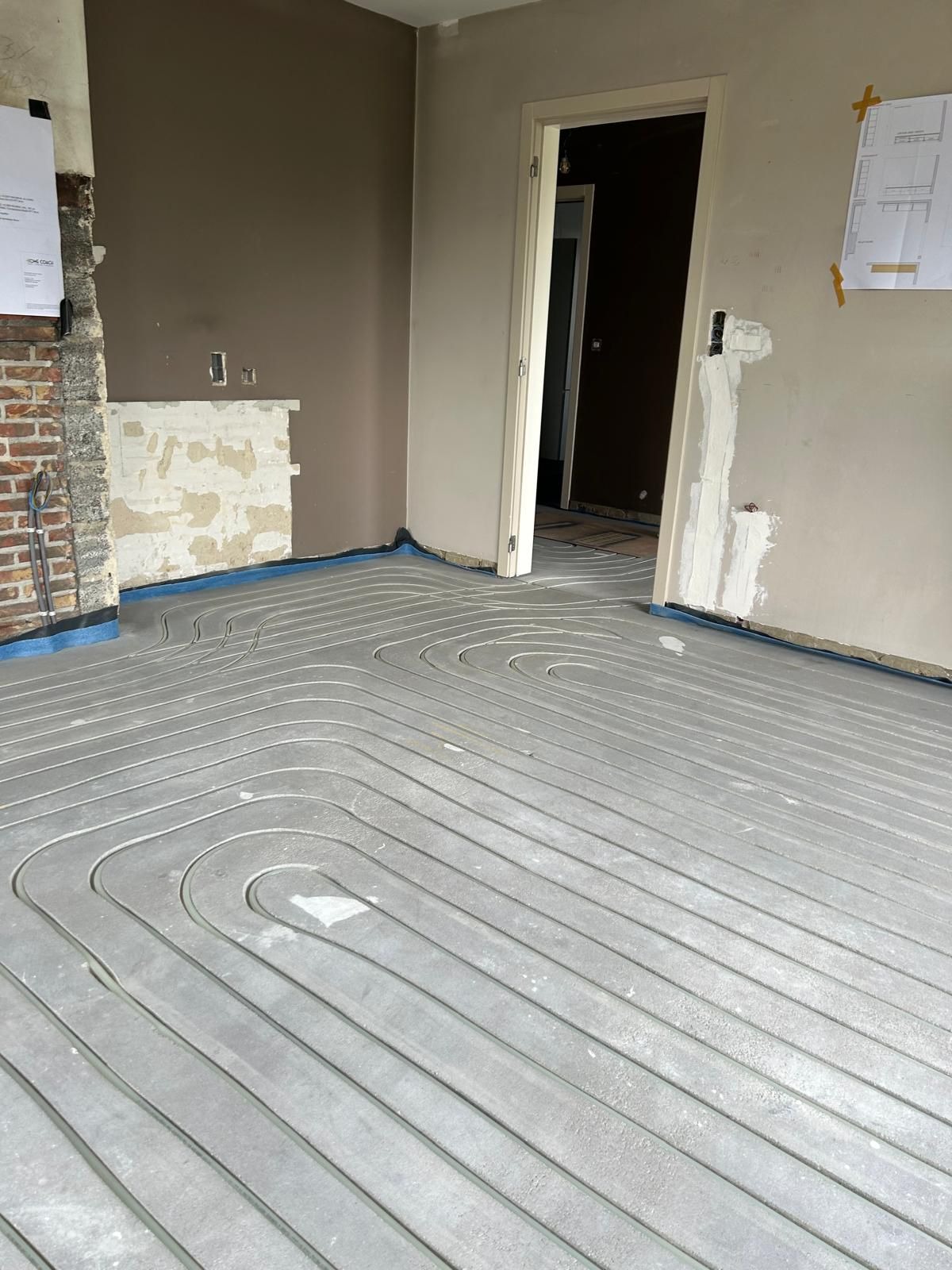 April 24' - De vloerverwarming krijgt netjes zijn plek in de gleuven die werden getrokken in de chape.